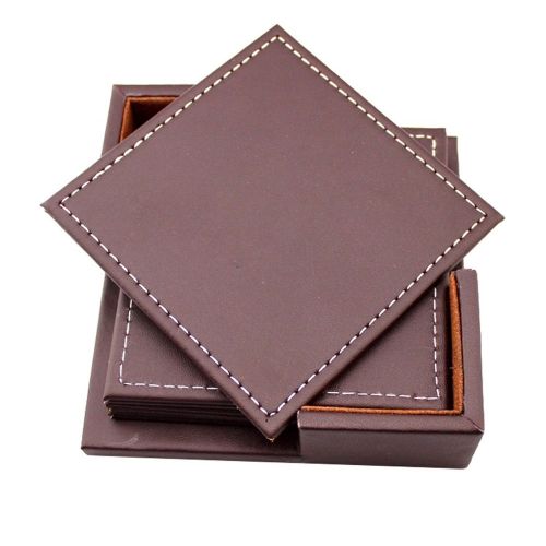 ชุดที่รองแก้วหนังลายเต็มแผ่นรองแก้วกาแฟถาดรองแก้วหนังโลโก้ธุรกิจของขวัญ