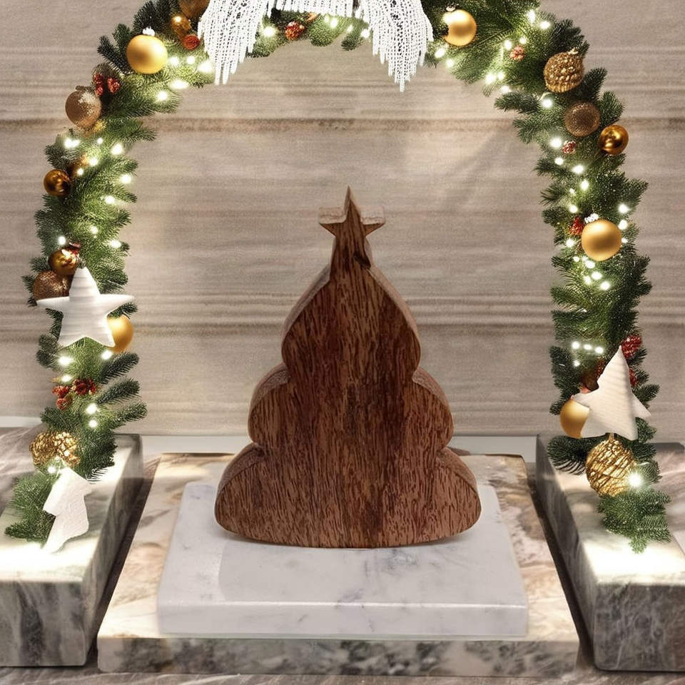 ไฟ LED ต้นคริสต์มาสทำด้วยมือทำจากโลหะพร้อมดีไซน์บ้านไร่แบบชนบทและตกแต่งด้วยไม้ธรรมชาติที่สมบูรณ์แบบสำหรับวันหยุด