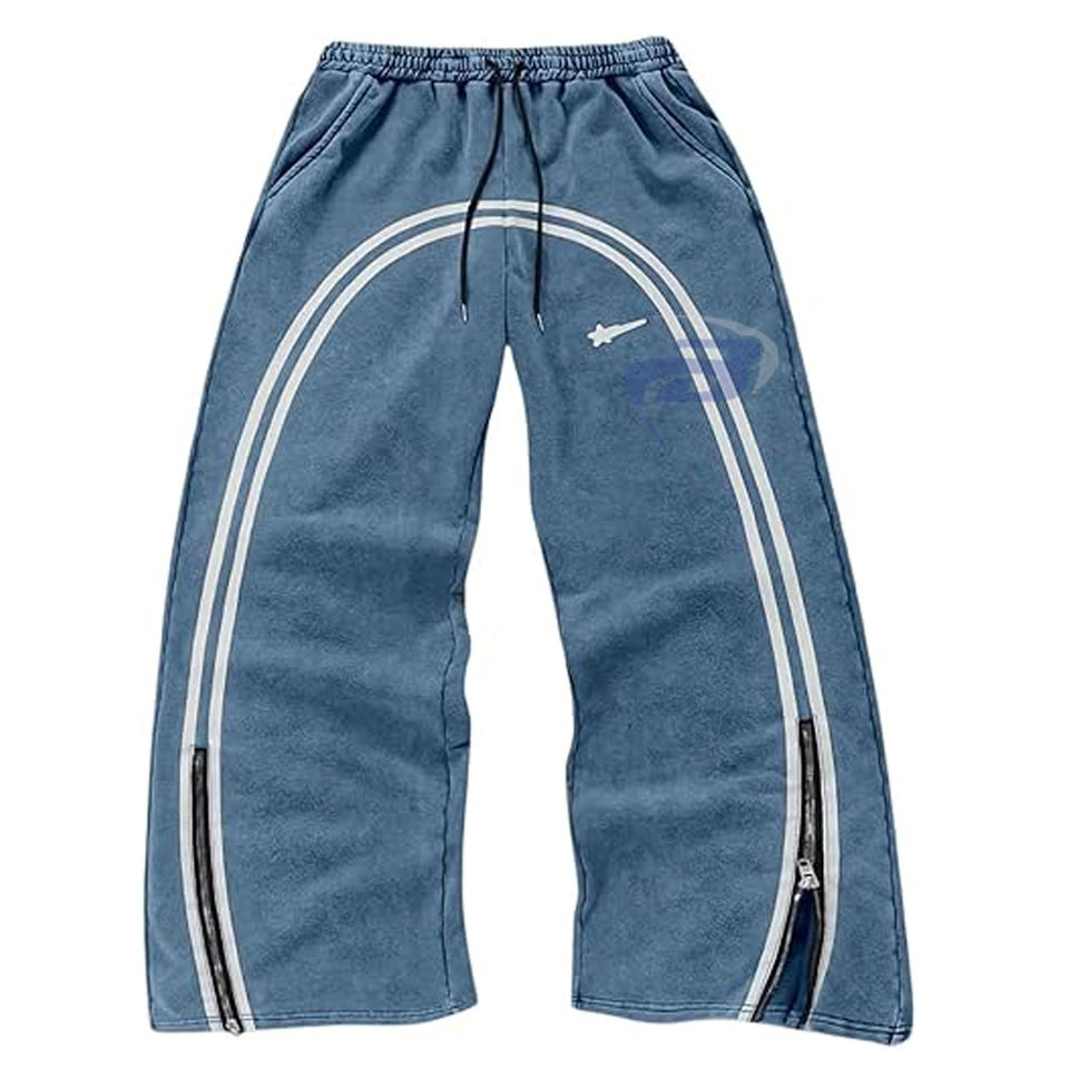 กางเกงวอร์มผู้ชายทรงโอเวอร์ไซส์ สไตล์สปอร์ต สตรีทแวร์ มีแถบข้างเอวสม็อค กันน้ำและกันลม