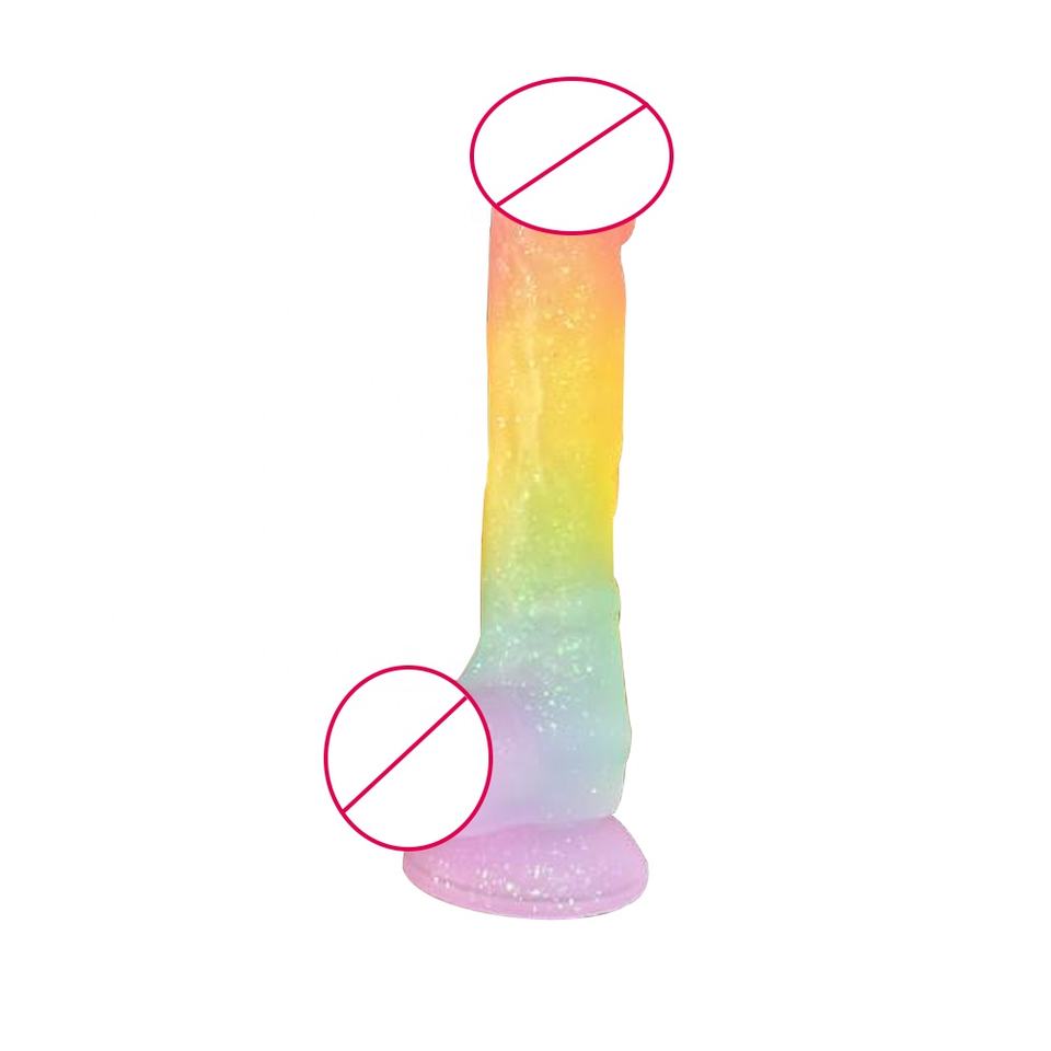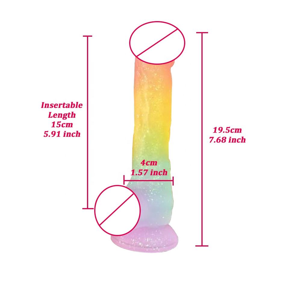 ดิ๊กโด้ซิลิโคนเหลวสำหรับผู้ชาย สีรุ้ง ขนาด 7 นิ้ว ดิลโด้แฟนตาซีสมจริงสำหรับผู้หญิง