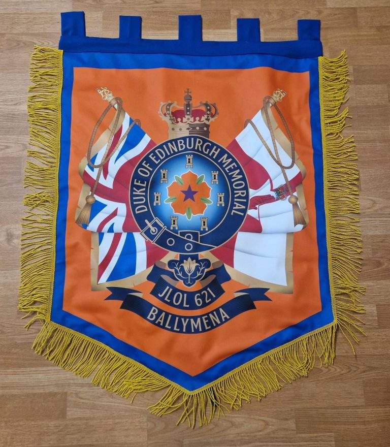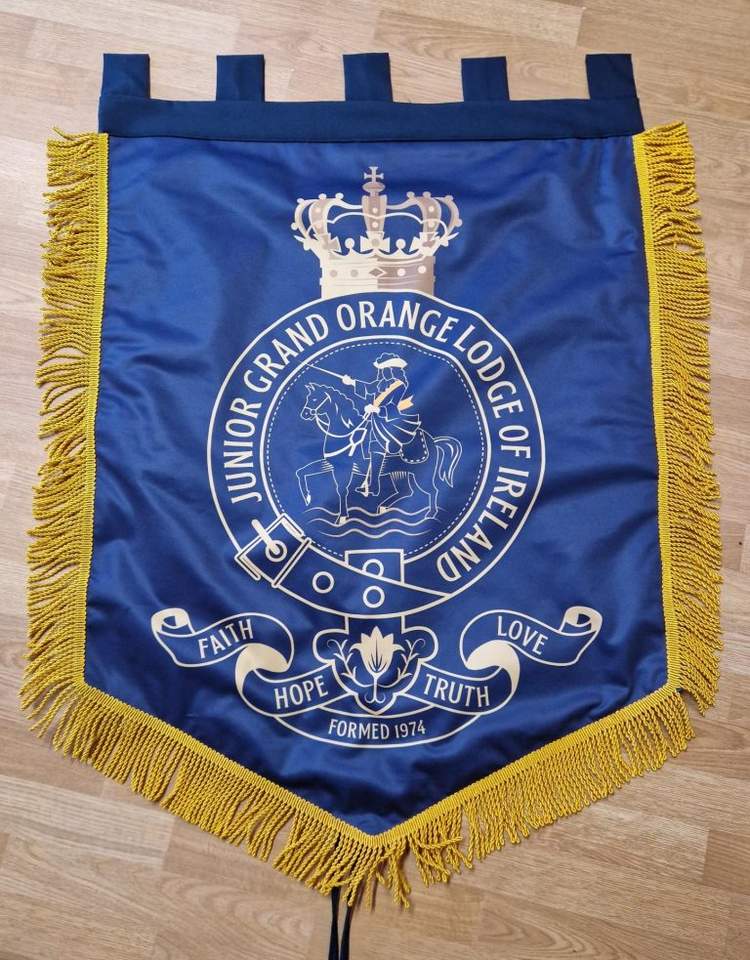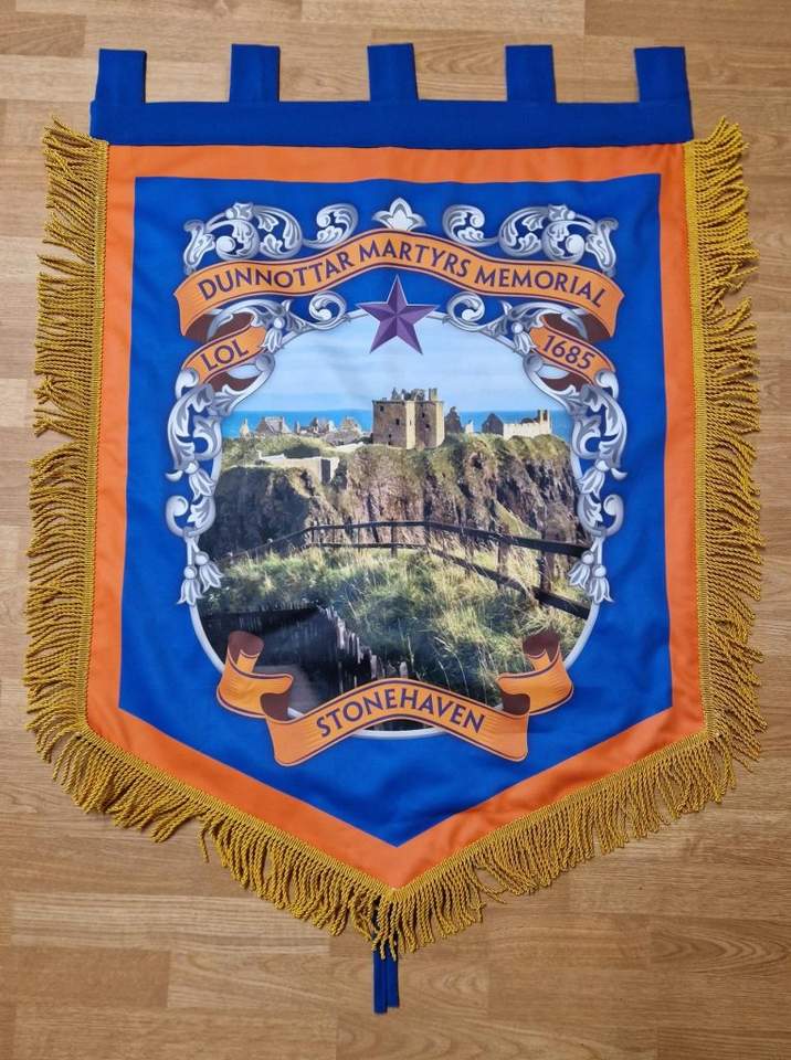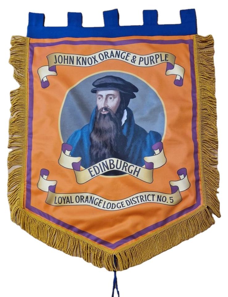 ป้ายโลดจ์แบนเนอร์จอห์นนอกซ์สีส้ม & สีม่วงเอดินเบิร์กแบบลอเรียโลเรนจ์ลอดจ์ NO.5
