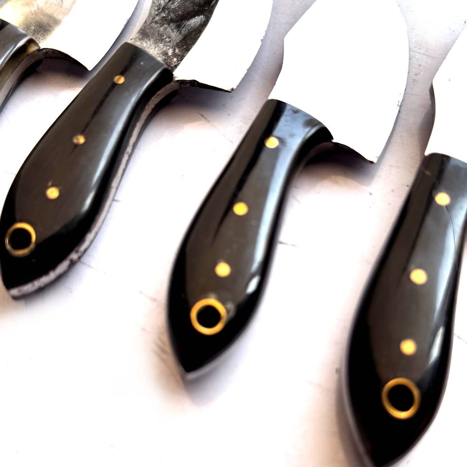 มีดพับเหล็กดามัสกัสตีขึ้นรูปด้วยมือ พร้อมปลอกหนัง ของขวัญขายส่ง สินค้าอเมริกา กำลังเป็นที่นิยม ด้ามทำจากเขาแกะ สำหรับกิจกรรมกลางแจ้ง MORTAL SAGA