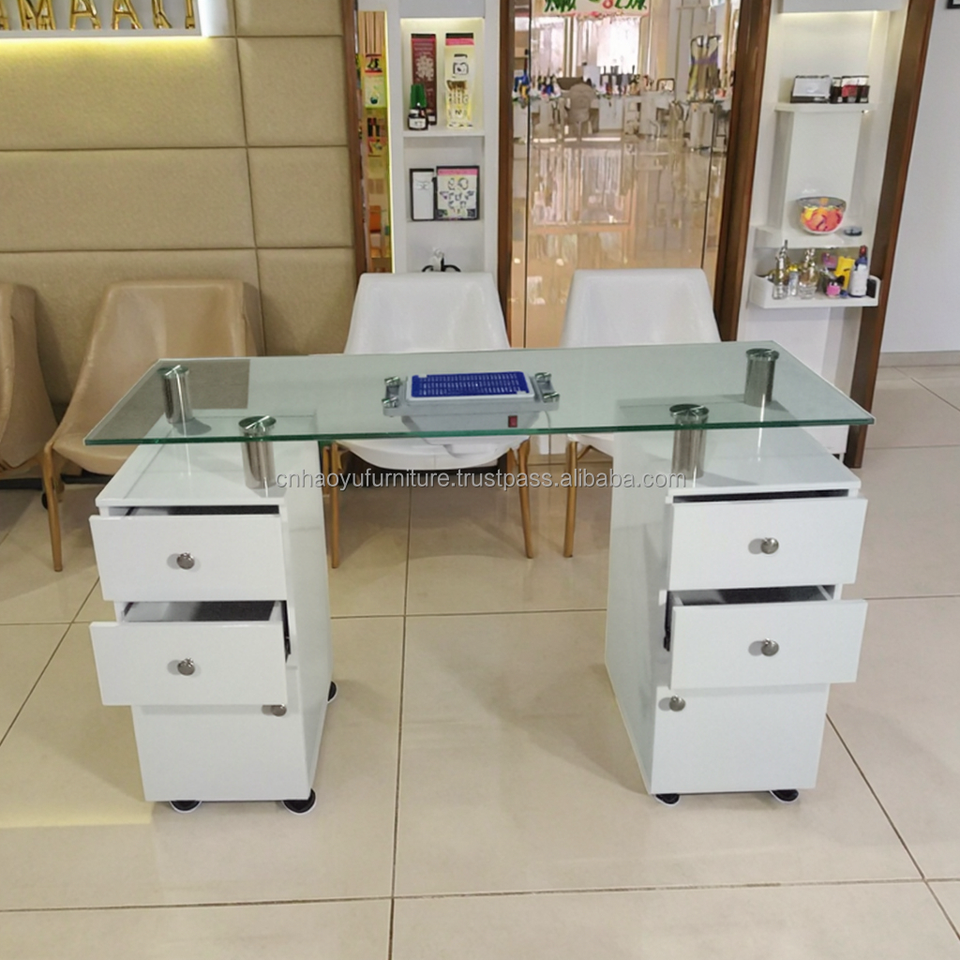 โต๊ะทำเล็บมือแบบกลิ้งไม่เหมือนใครพร้อมที่เก็บฝุ่นและลิ้นชักสำหรับร้านทำเล็บ