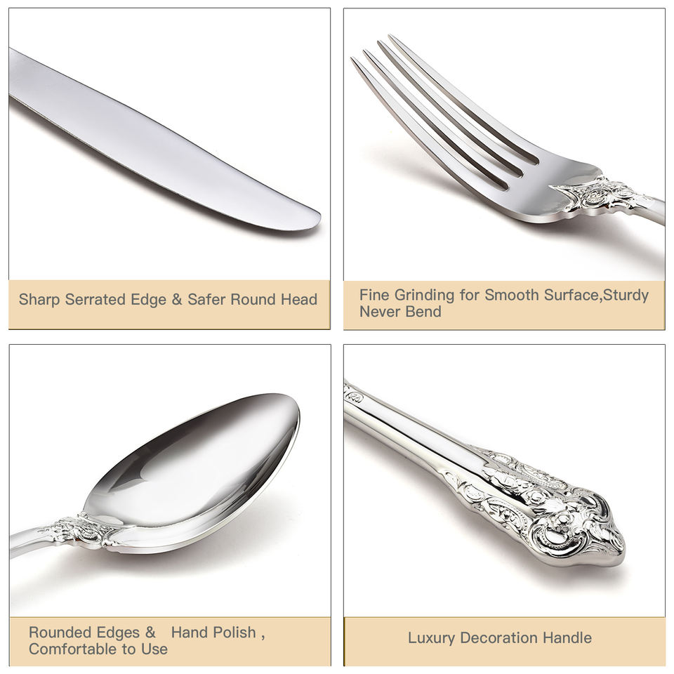 ชุดช้อนส้อมสแตนเลส18/8สุดหรูเครื่องเงินสำหรับงานแต่งงาน