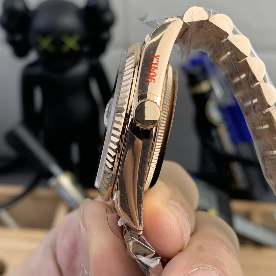 นาฬิกาอัตโนมัติหรู QF หน้าปัดสีน้ำตาลโรงงาน36มม. กันรอยขีดข่วนนาฬิกาคริสตัลสีฟ้าแสดงวันที่และวันสำหรับผู้ชาย