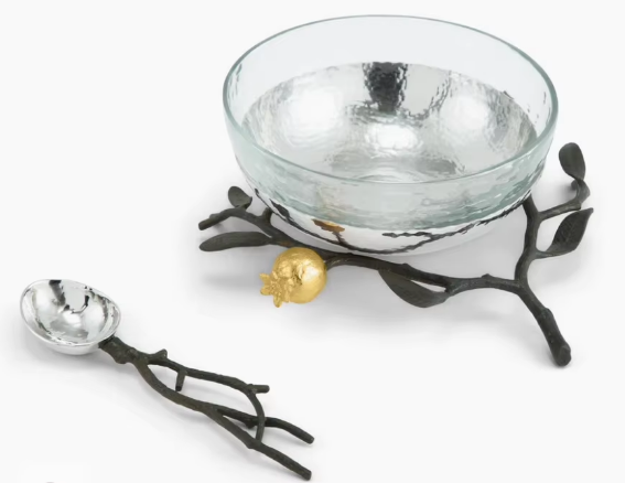 luxury Bowl with Spoon For table top Kitchenware Home Hotel Restaurant Dinnerware Aluminium Silver Color round shaped glass bowl