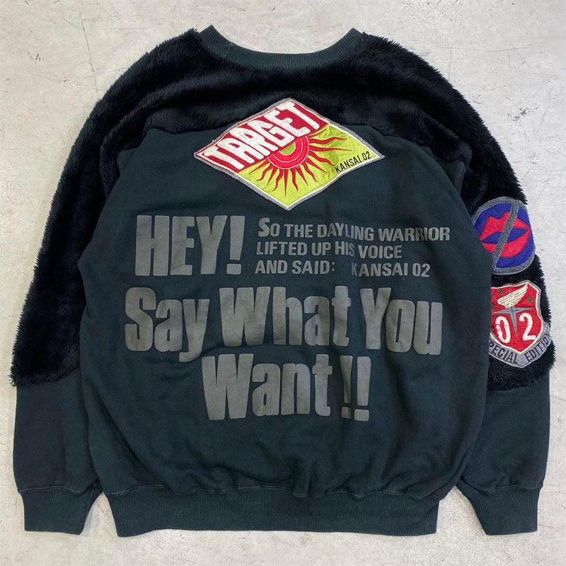 เสื้อสเวตเชิ้ตพิมพ์ลาย/ปักลายกรดแผ่นปะติดไหล่ปล่อยทรงหลวมดีไซน์หรูหราออกแบบได้ตามต้องการ