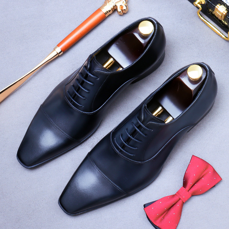 รองเท้าหนังผู้ชายสุดหรู รองเท้าธุรกิจหนังวัว กันลื่น สวมใส่สบาย คุณภาพสูง ผลิตด้วยมือ รองเท้าอ็อกซ์ฟอร์ดสำหรับผู้ชาย