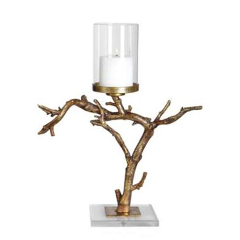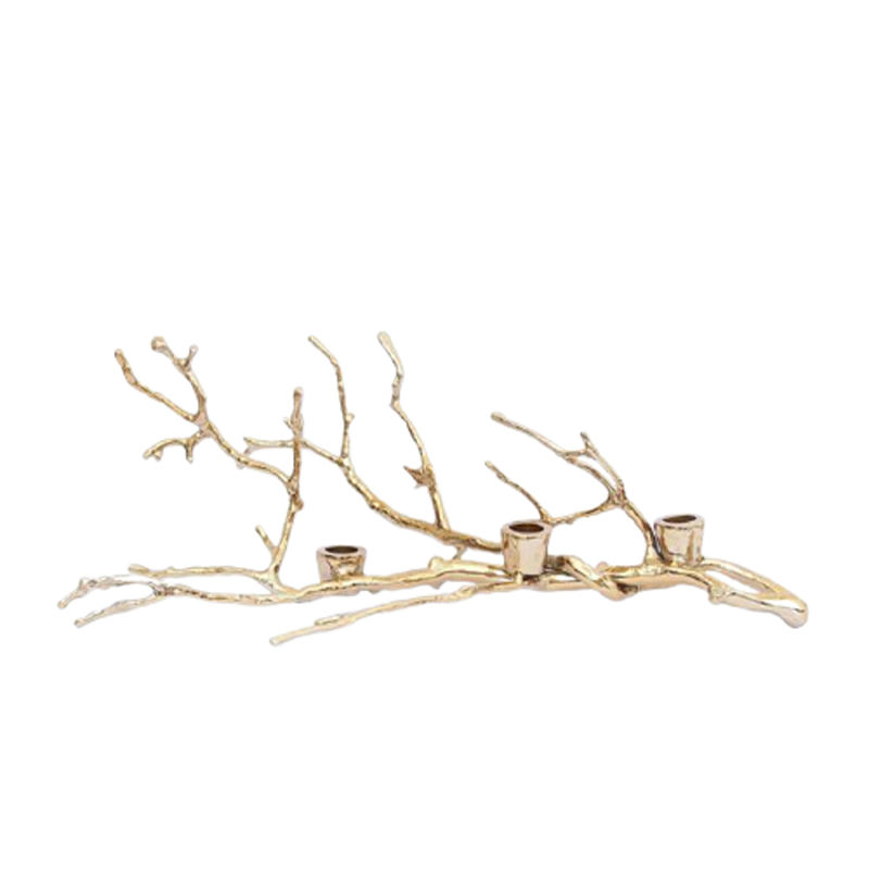 ที่ใส่เทียนรูปกิ่งไม้เคลือบทองสำหรับตกแต่งคริสต์มาส งานโลหะทำมือเคลือบเงาสีทอง