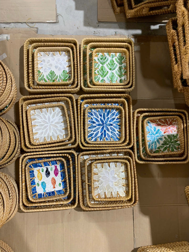 ตะกร้าหวายสานทำมือสุดหรู พร้อมตกแต่งเปลือกหอย - ถาดเดี่ยวระดับไฮเอนด์สำหรับจัดเก็บในห้องครัวและห้องนั่งเล่น