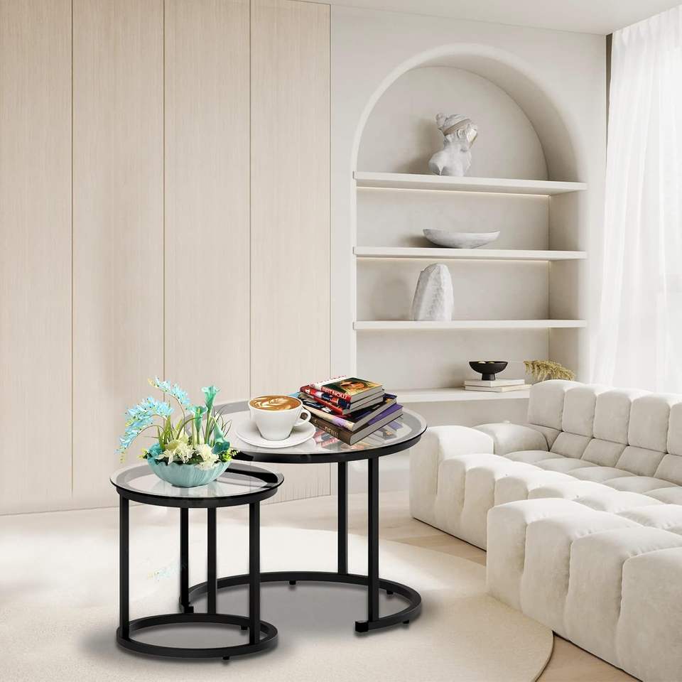 2026 Modern Luxury Round Nesting Coffee Table Sintered Stone Top Metal Frame Space Saving Furniture Living Room Center Tea Table