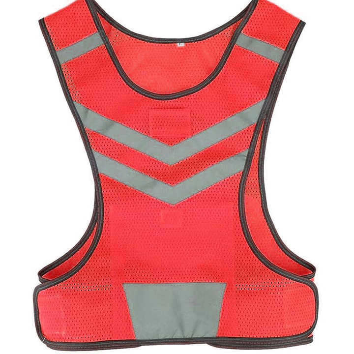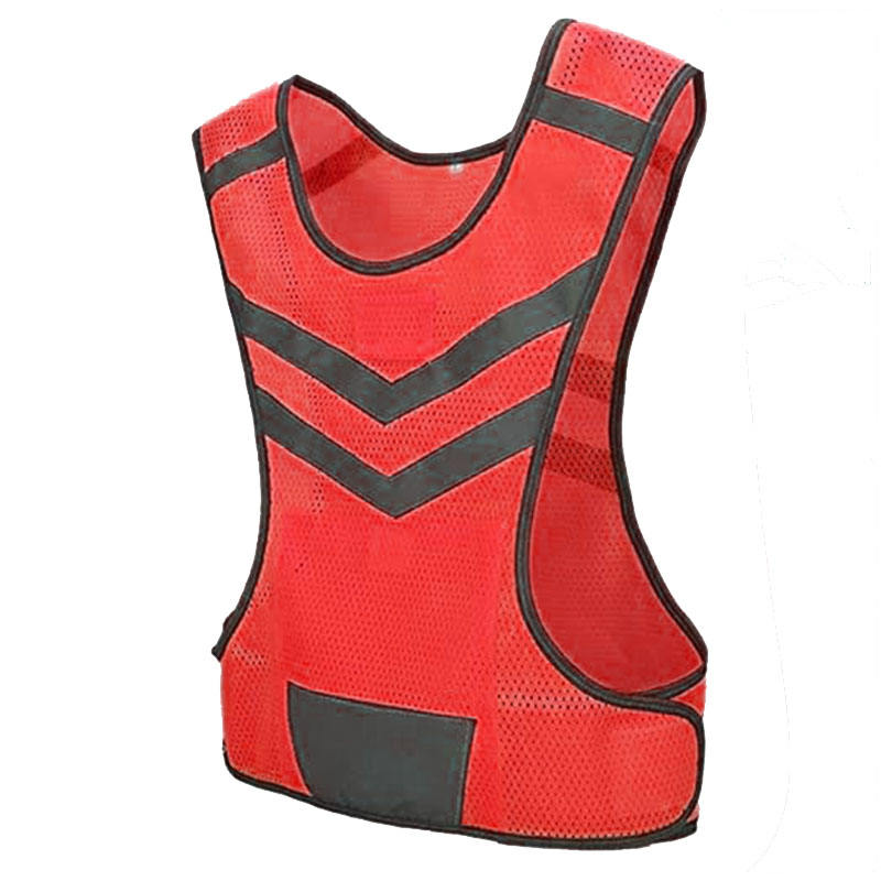 เสื้อกั๊กใส่ทำงานที่มองเห็นได้ชัดเจนแถบสะท้อนแสงติดโลโก้แบบปรับแต่งได้สีแดง