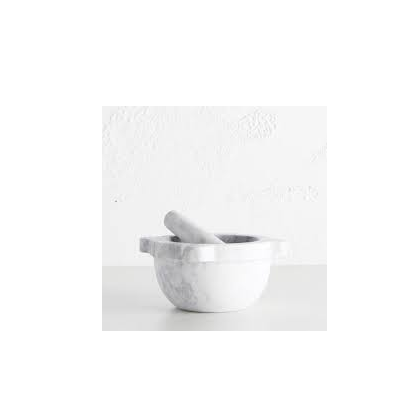 ครกและสากลายหินอ่อนทำด้วยมือสำหรับเครื่องครัว