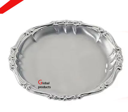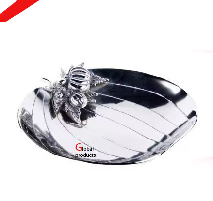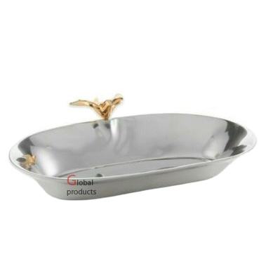 จานสเตนเลสสตีลโลหะสีเงินพร้อมดีไซน์สุดมหัศจรรย์สำหรับตกแต่งบนโต๊ะดีไซน์รูปนกสีทอง
