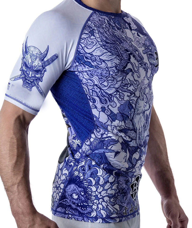 เสื้อแรชการ์ดผู้ชายไซส์ใหญ่พิเศษ ลายพิมพ์สวยงาม สำหรับออกกำลังกาย โลโก้สั่งทำได้ สีดำ Sage of Six Paths