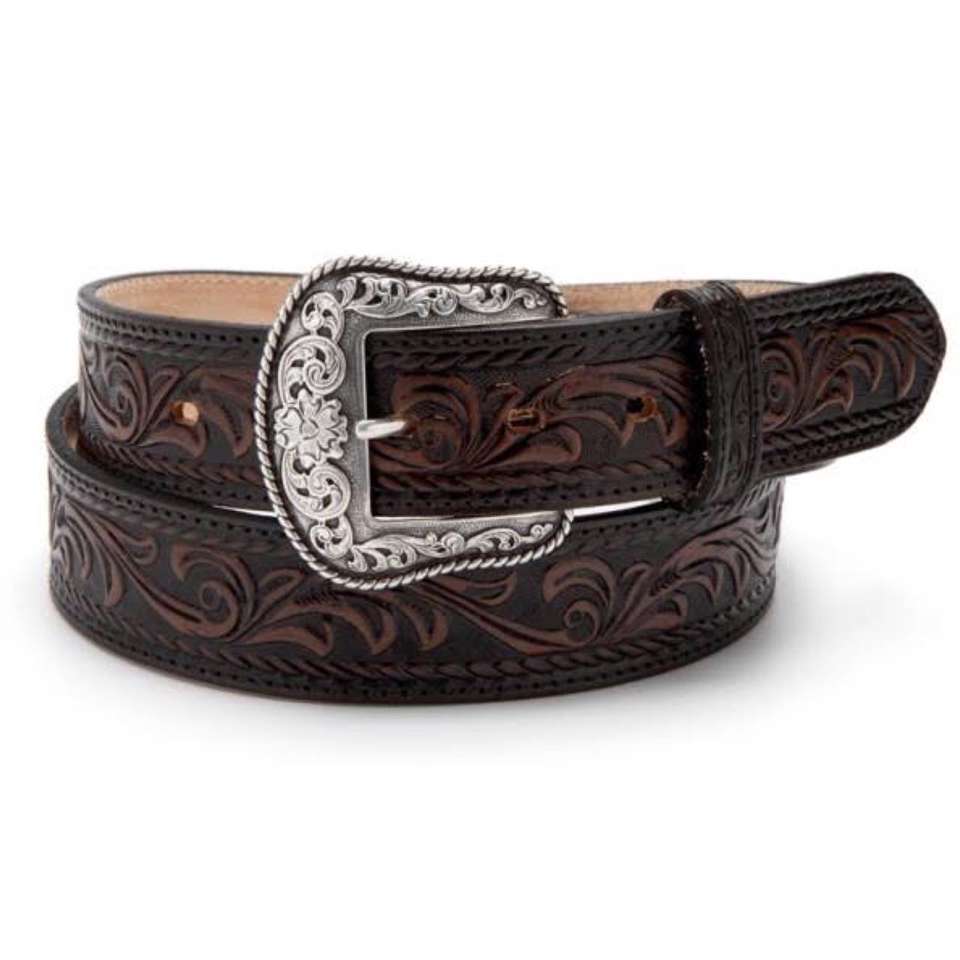 เข็มขัดหนังแท้สไตล์ตะวันตกสำหรับผู้ชาย พร้อมลวดลายดอกไม้ที่แกะสลักด้วยมือ และหัวเข็มขัดเคลือบเงินแบบถอดได้