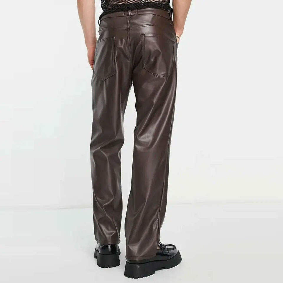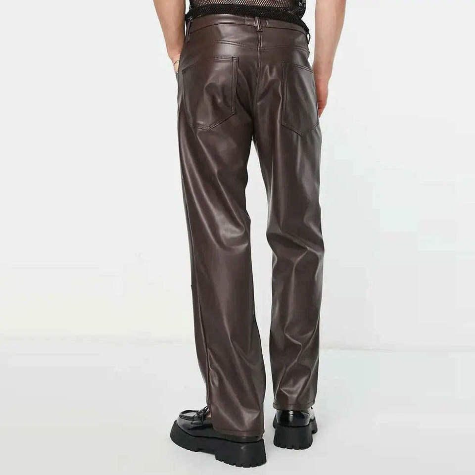 กางเกงหนังผู้ชายคุณภาพสูง ล้างแล้ว ทรงทันสมัย กระเป๋าเงา ขายส่ง กางเกงหนังผู้ชายคุณภาพดี บริการ OEM