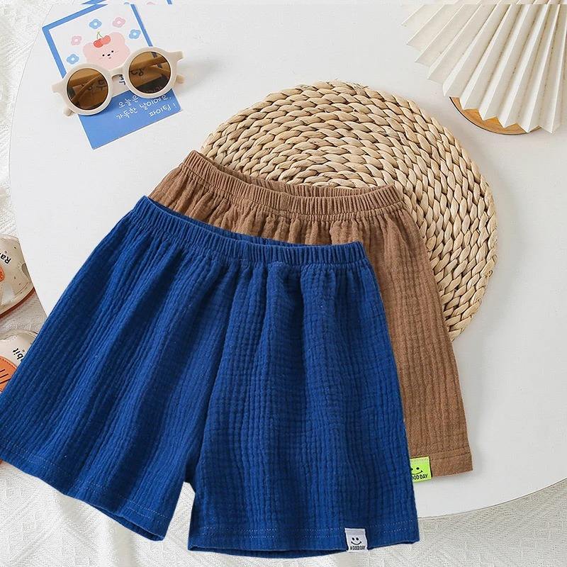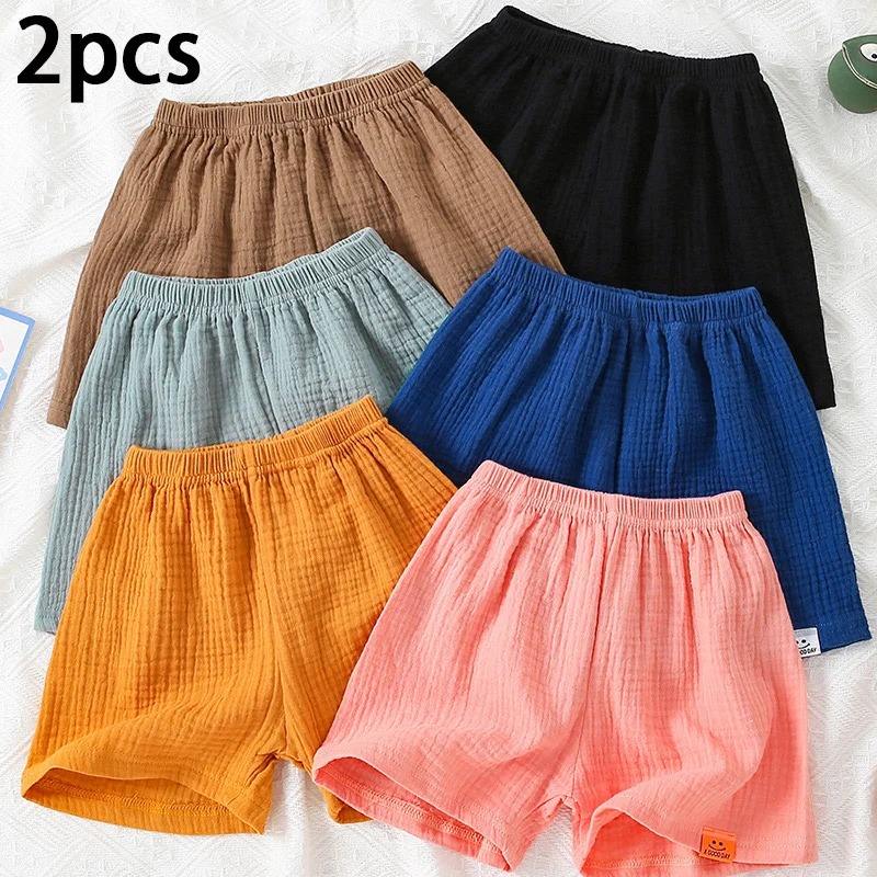กางเกงขาสั้นผู้ชายผ้าฝ้ายแท้2ชิ้นสำหรับฤดูร้อนกางเกงขาสั้นเด็กผู้หญิงสีทึบกางเกงลำลองกางเกงเด็กเสื้อผ้ากีฬาเด็กชาย