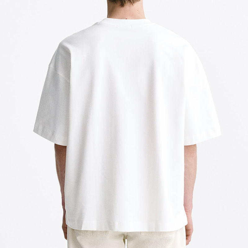 เสื้อยืดคอกลมสำหรับผู้ชายทรงหลวมเปิดไหล่ตกไซส์ใหญ่พิเศษทำจากผ้าฝ้าย100% ออกแบบโลโก้ได้ตามต้องการ