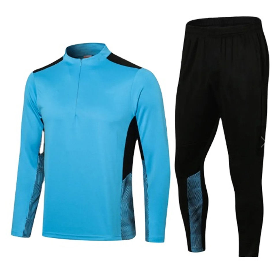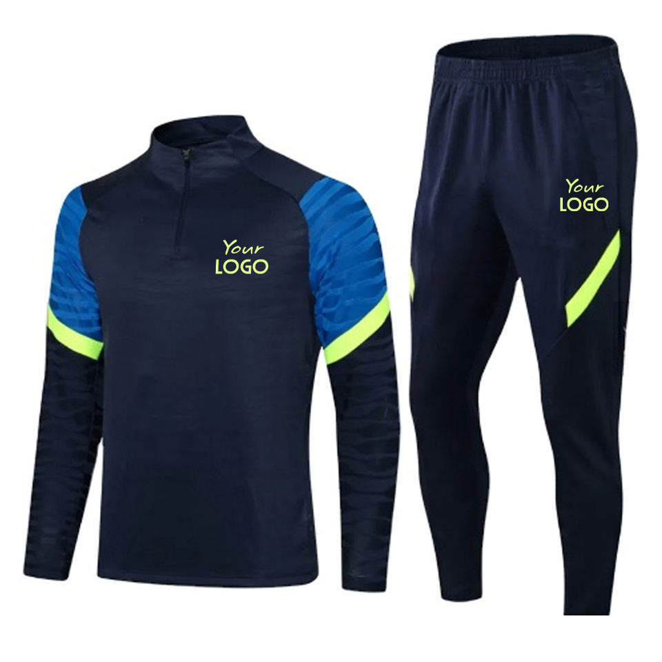 ชุดวอร์มสำหรับผู้ชายแบบสั่งทำมีโลโก้สีน้ำเงินและนีออนแขนยาวแบบสวมหัวและกางเกงวิ่งชุดออกกำลังกายทรงสลิมฟิต