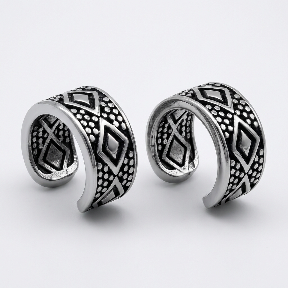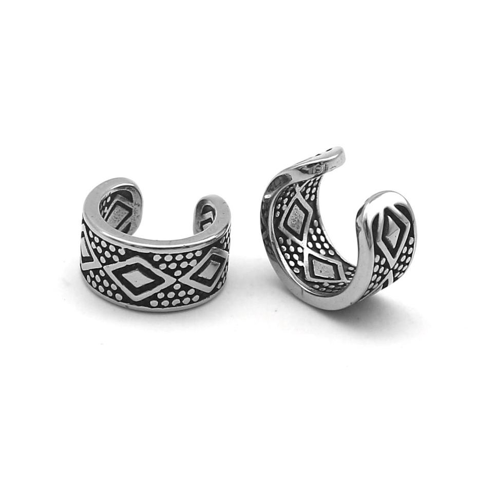ต่างหูแบบหนีบสำหรับผู้ชาย สแตนเลส 316L ป้องกันการแพ้ รูปทรงเรขาคณิต เพชร ลายชนเผ่า วงกว้าง ไม่ต้องเจาะหู สไตล์วินเทจ โบโฮ ของขวัญ