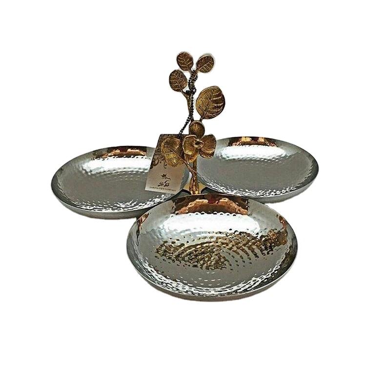 ชามใส่ถั่วสำหรับใส่อาหารและผลไม้3ช่องทำจากสเตนเลสสตีลสำหรับใส่อาหารสำหรับงานแต่งงาน