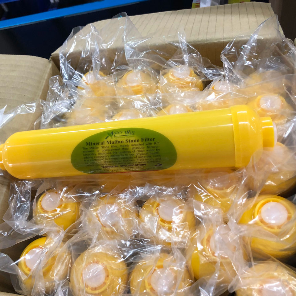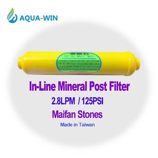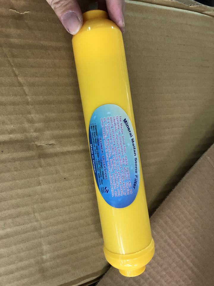 เครื่องกรองน้ำระบบ Reverse Osmosis แบบอินไลน์ พร้อมหินไมแฟนและแร่ธาตุ (ตัวกรองสีเหลือง) (ข้อต่อ 1/4 นิ้ว NPT) ใช้งานด้วยมือ สำหรับใช้ในบ้านและนอกบ้าน