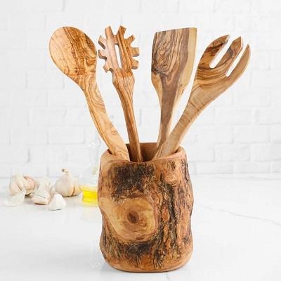 ชุดเซิร์ฟเวอร์พร้อมเหล็กกระจกและไม้อาคาเซียมมะม่วงธรรมชาติเครื่องมือครัวชุบขัดทำในอินเดีย