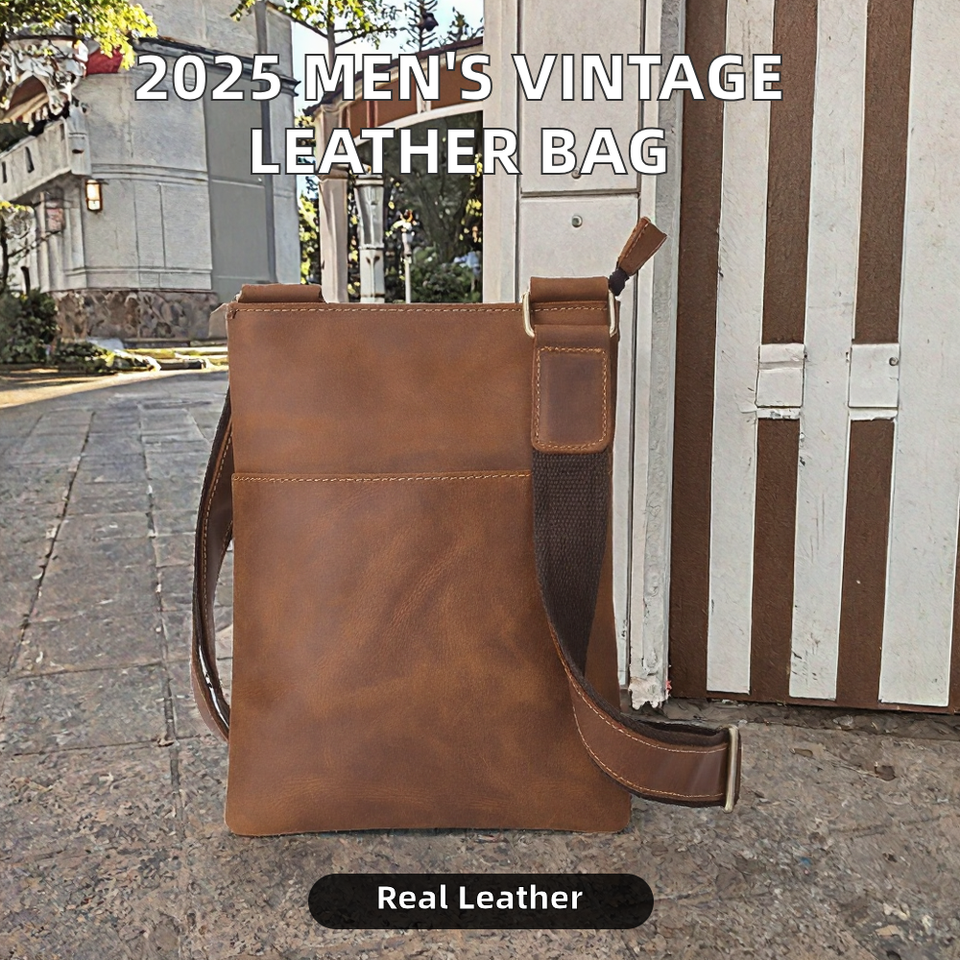 กระเป๋าคาดลำตัวผู้ชายสไตล์วินเทจสมัยใหม่ หนังแท้ แฟชั่นลำลองสำหรับฤดูร้อน ซับในผ้าฝ้าย