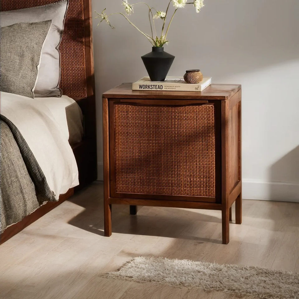ที่วางของทำจากไม้จริงทันสมัยและหรูหรางานฝีมือข้างเตียงงานหวายงานหัตถกรรมที่ทำด้วยมือพร้อมการวาดแบบเดี่ยว