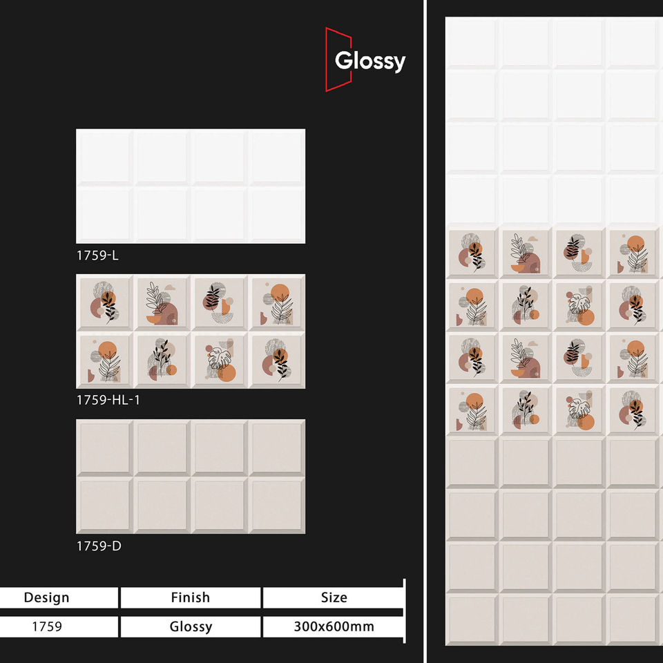 กระเบื้องบุผนังเซรามิกขนาด 300x600 มม. สำหรับห้องน้ำ ห้องครัว ผิวมันเงา/ด้าน ลายแกะสลักน้ำตาล ดีไซน์ตกแต่งผนังภายในสุดหรู