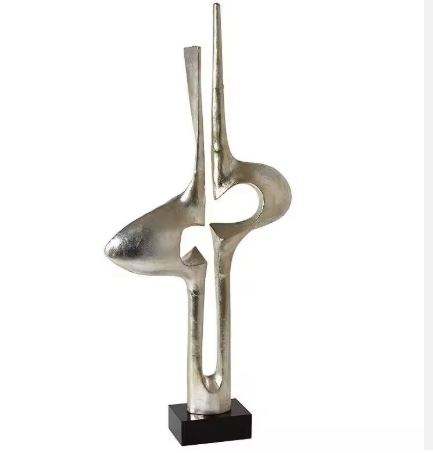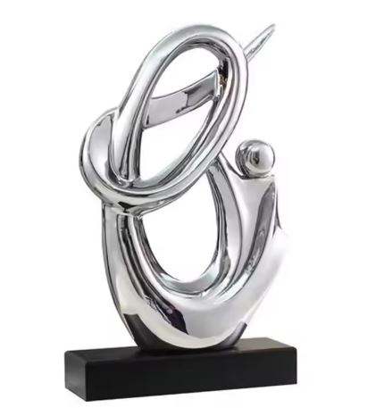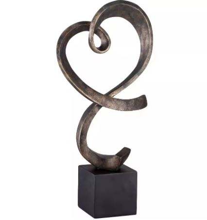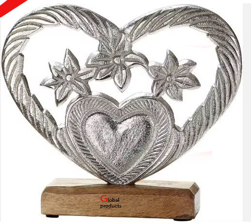 รูปปั้นตกแต่งโลหะอลูมิเนียมรูปหัวใจที่สวยงามดีไซน์ทันสมัยพร้อมฐานไม้สำหรับบ้านและสำนักงานในโรงแรม