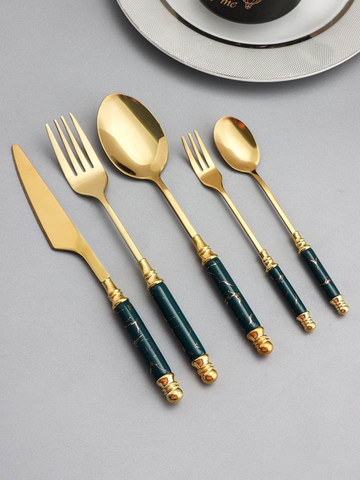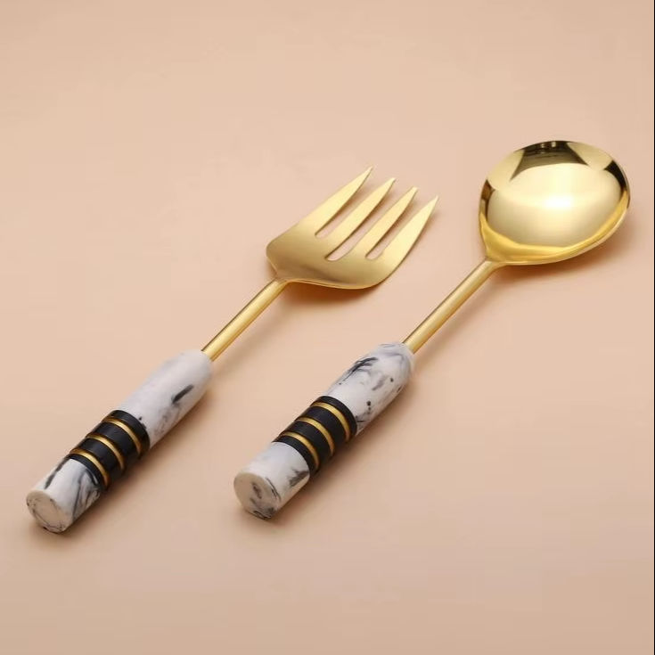 ชุดช้อนส้อมมีดหรูหราทันสมัย ด้ามจับเรซิ่น สแตนเลส ใช้ซ้ำได้ ปลอดภัยสำหรับเครื่องล้างจาน เหมาะสำหรับงานเลี้ยง