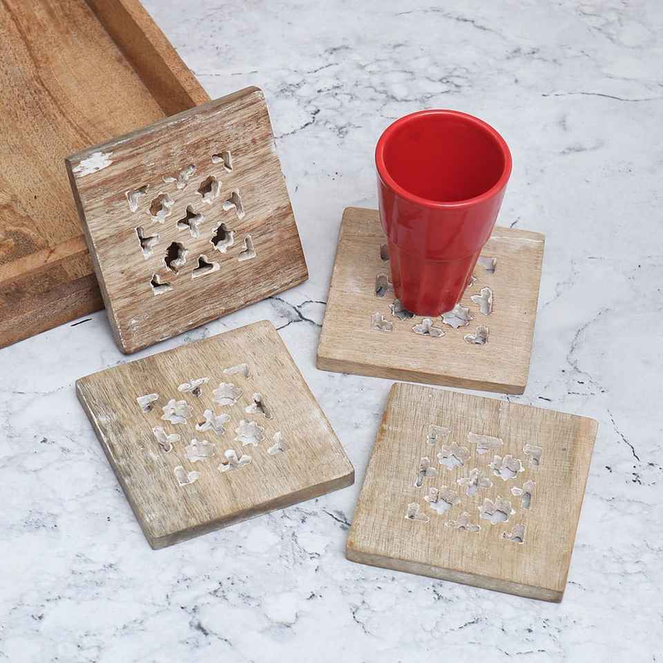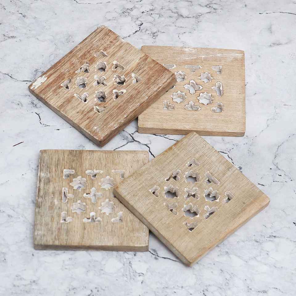 Modern Jali Wooden Natural Walnut Coasters Set Square 300mm Diameter Eco-Friendly MN EXPORTS for Weddings & Restaurants
