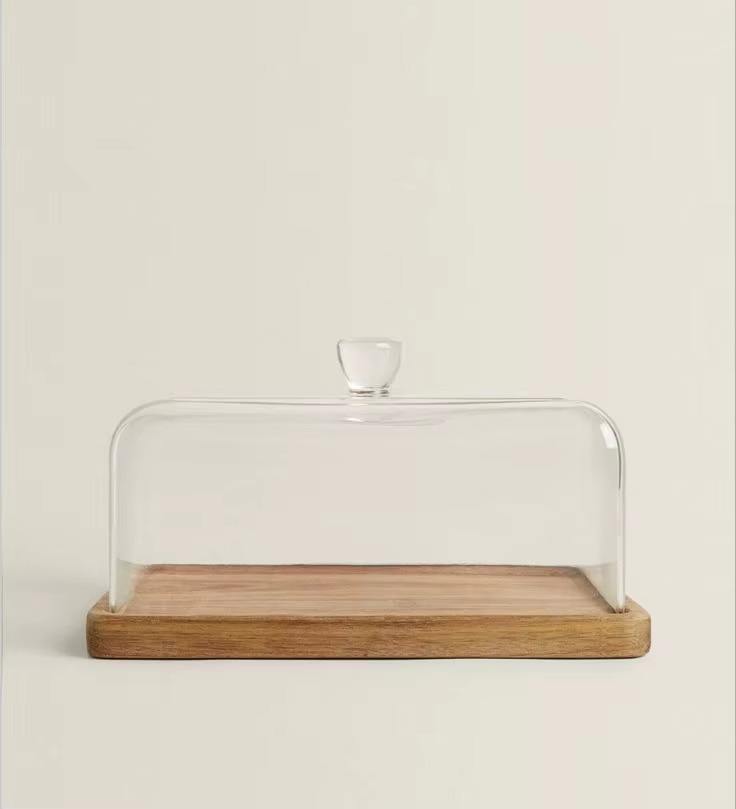 ฐานวางเค้กทรงสี่เหลี่ยมโลหะและกระจกทันสมัย ฝาปิดกระจกปรับแต่งได้ ทำด้วยมือ ใช้กับเตาอบและเครื่องล้างจานได้ เหมาะสำหรับจัดวางบนโต๊ะของหวาน