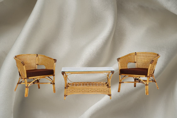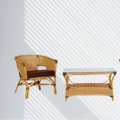 ชุดระเบียงคาซามะทันสมัยทำด้วยมือเก้าอี้ไม้หวายโต๊ะกาแฟสไตล์อินโดนีเซียคลาสสิกสำหรับห้องนั่งเล่นเฟอร์นิเจอร์
