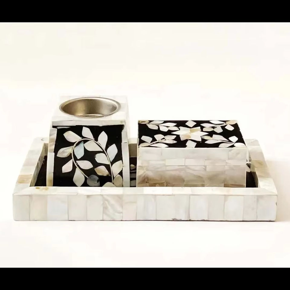 ชุดเครื่องหอมมุกแท้พร้อมถาดและกล่อง - ชุดตกแต่งบ้านสุดหรู - สไตล์ดั้งเดิม