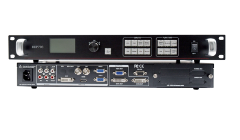 โปรเซสเซอร์วิดีโอแสดงผลแบบ LED สีเต็มรูปแบบ HDP703มีความละเอียด3840x1920และเอาต์พุตวิดีโอ3รายการ