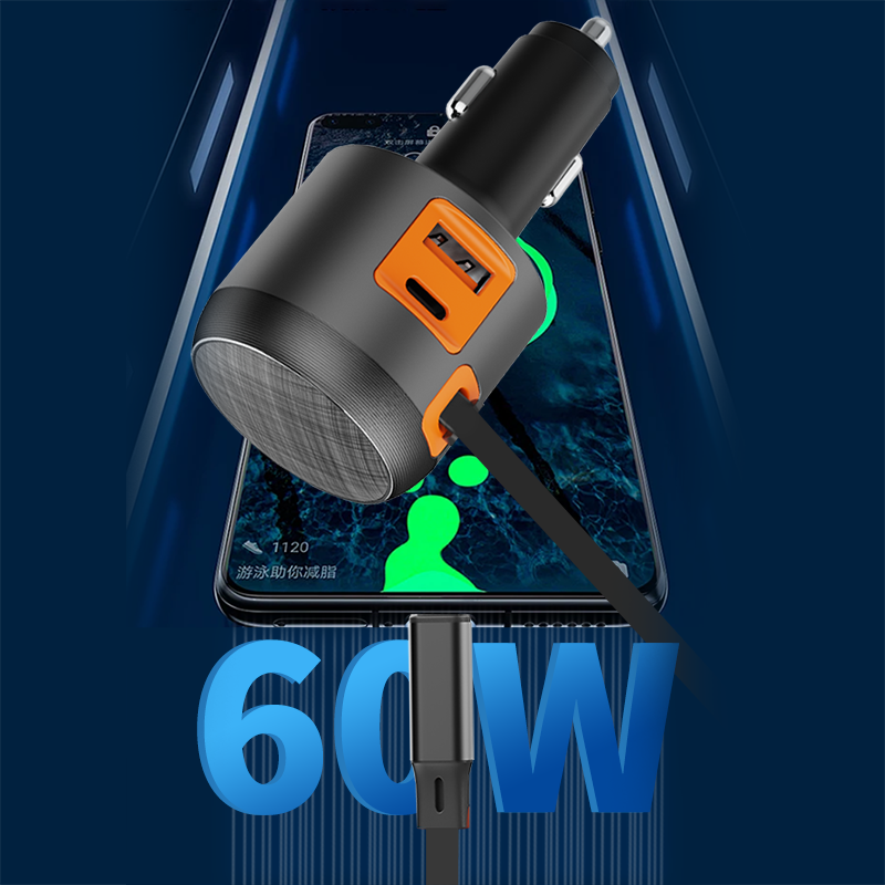 ชื่อสินค้า:ที่ชาร์จโทรศัพท์ในรถยนต์แบบยืดหดได้ 60 วัตต์