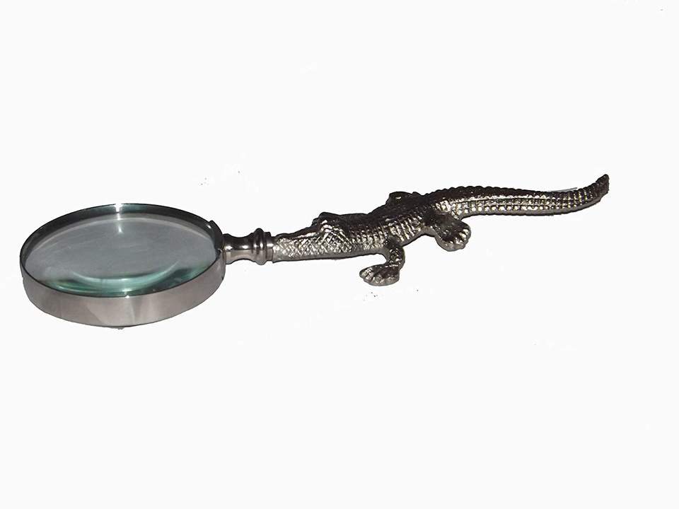 แว่นขยายอ่านค่าสีเงินแบบอเนกประสงค์สำหรับจระเข้ทะเลและจิ้งจกดีไซน์กระจก & มือจับทองเหลืองของขวัญ