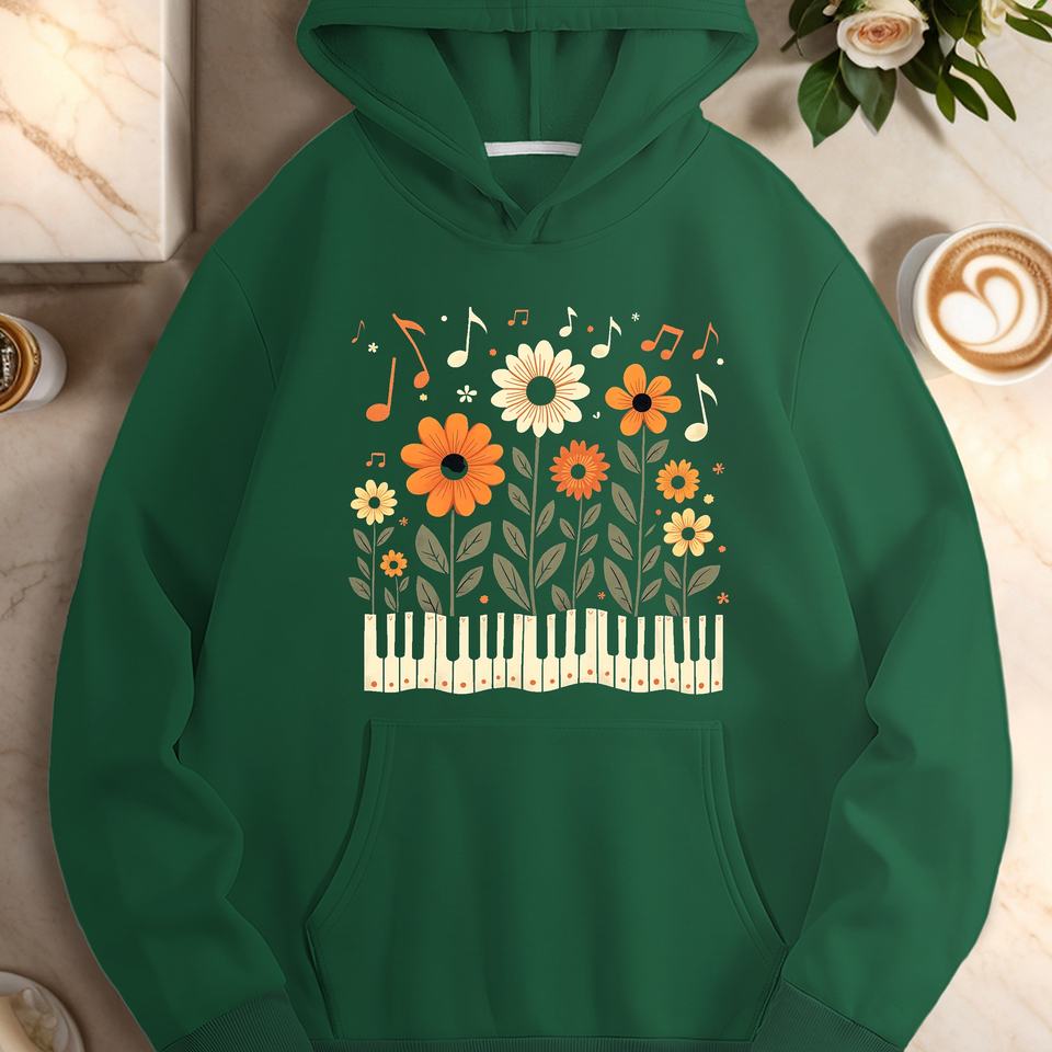 เสื้อฮู้ดลำลองของผู้หญิงองค์ประกอบดนตรีและดอกไม้