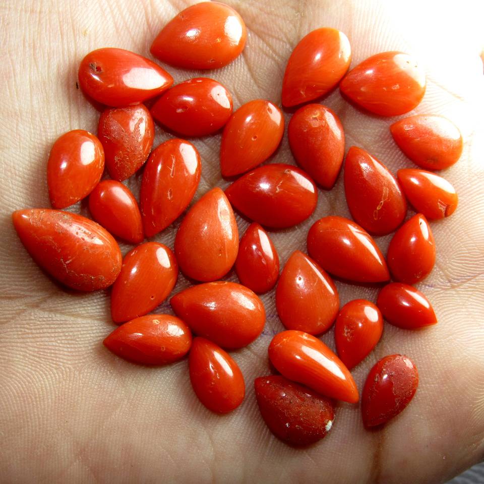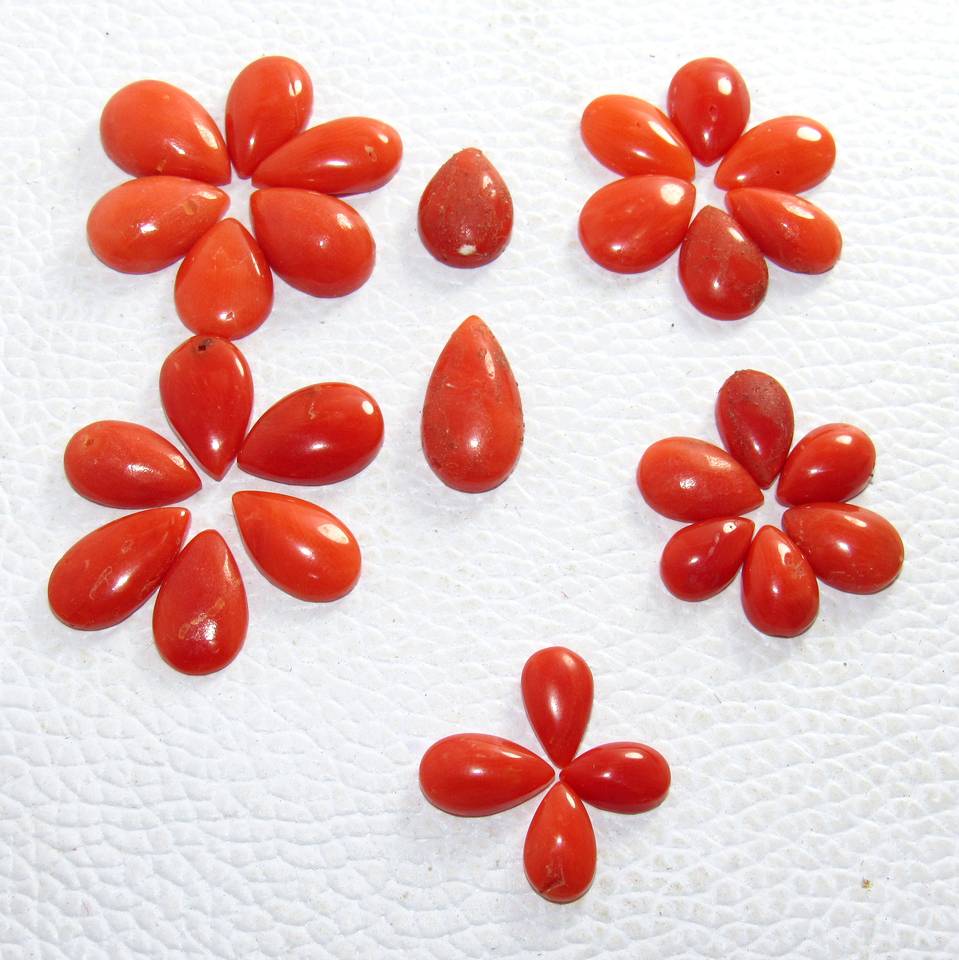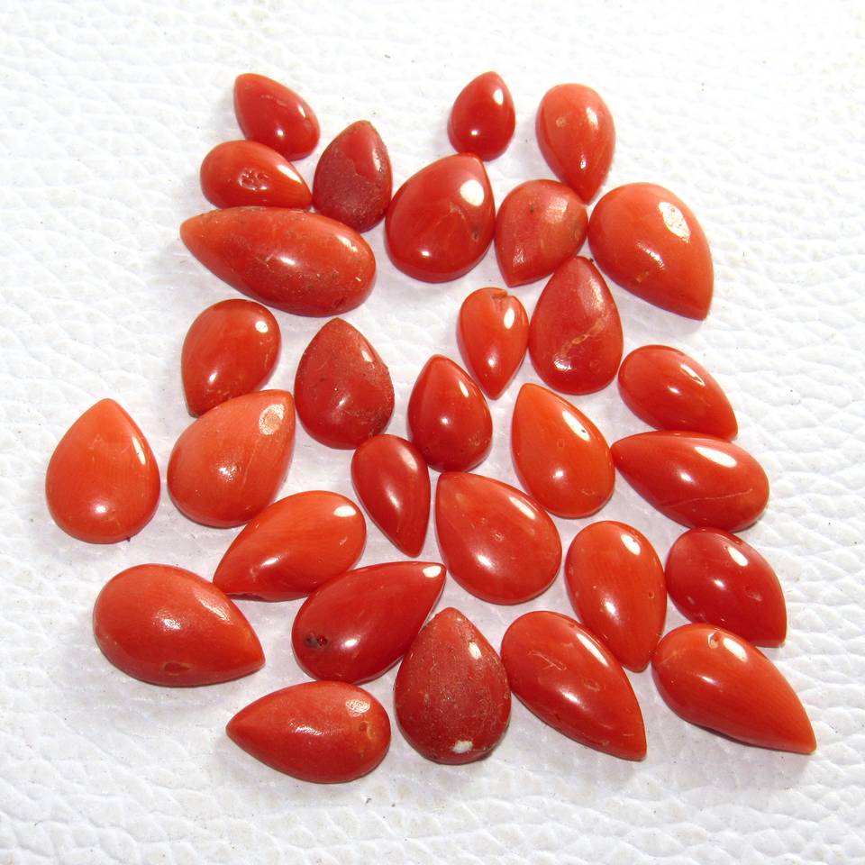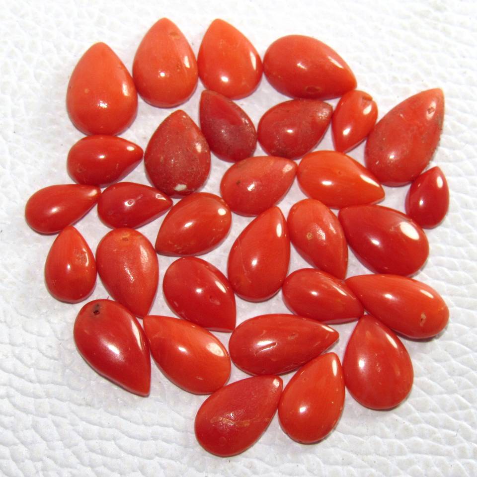 ปะการังอิตาลีทรงลูกแพร์เรียบอัญมณีทรงหลวมสำหรับทำเครื่องประดับขายส่งราคาต่อกะรัตคุณภาพดีตามธรรมชาติ