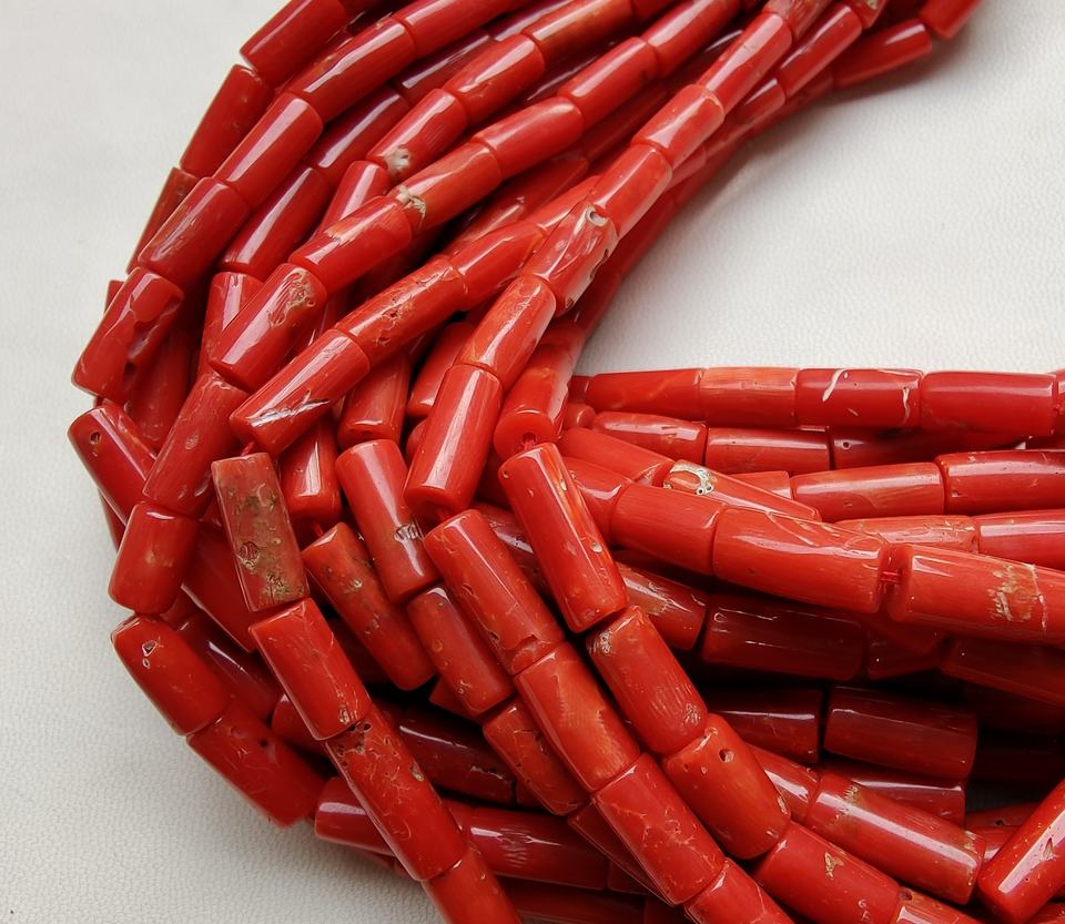ลูกปัดปะการังทะเลสีแดงอิตาลีธรรมชาติ รูปทรงหลอด คุณภาพดี ความยาว 16 นิ้ว สำหรับทำเครื่องประดับ