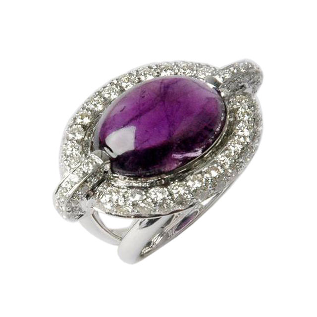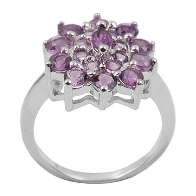 แหวนพลอยอเมทิสต์ธรรมชาติ925แข็งแหวนอัญมณีเงินสเตอร์ลิงแหวน CZ ออกแบบได้ตามต้องการ