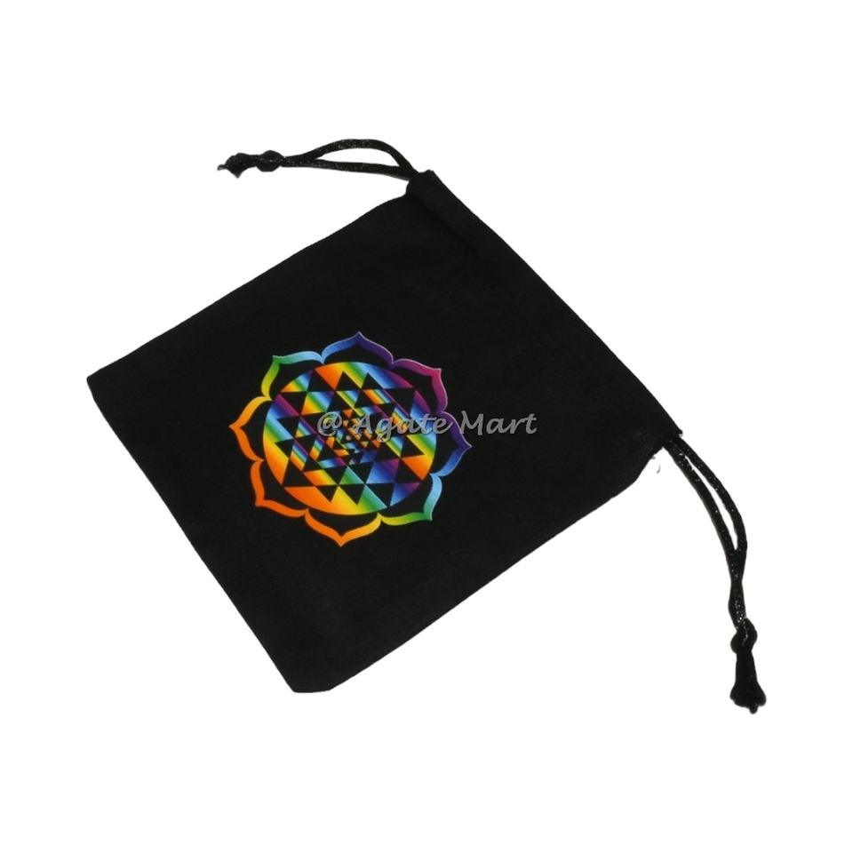 ถุงผ้าธรรมชาติทำจากผ้าฝ้ายสัญลักษณ์จักระภาษาสันสกฤตบรรจุภัณฑ์งานฝีมือคริสตัล