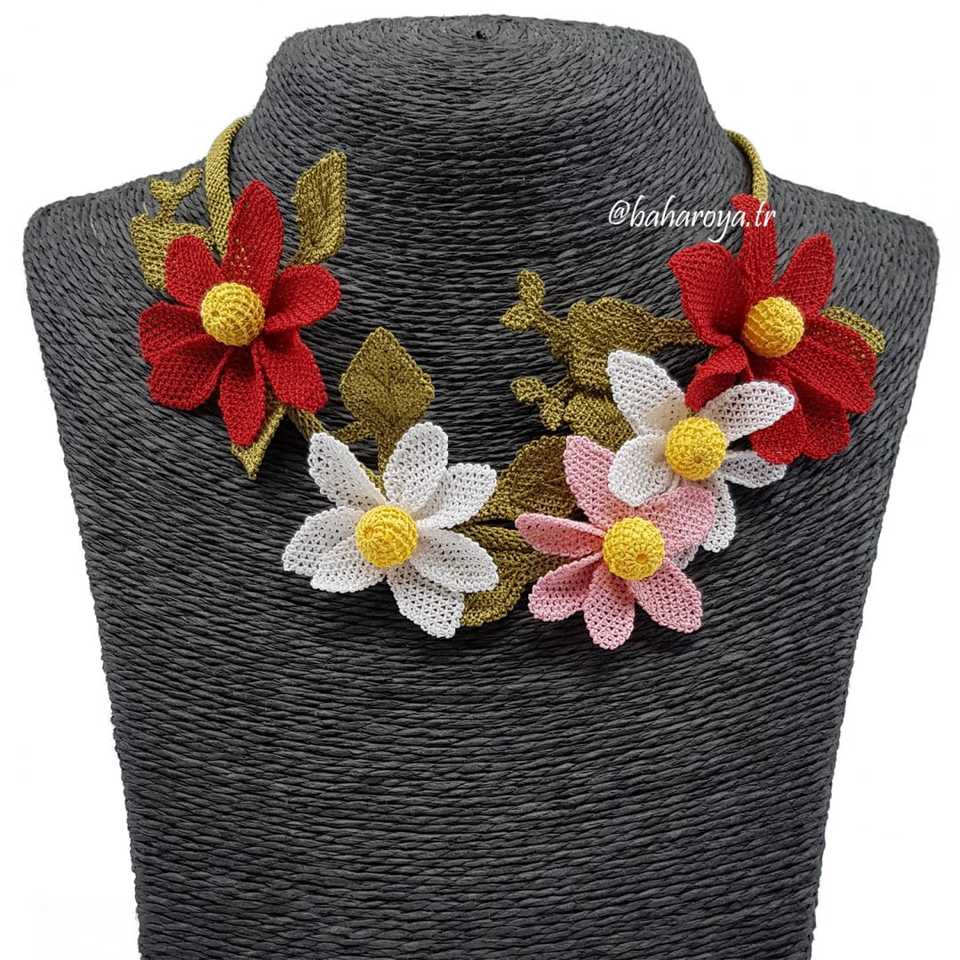 İğne Oyası Gül Dünya Kolye Kırmızı-Beyaz Moda Kolayları Ve Başlıklar