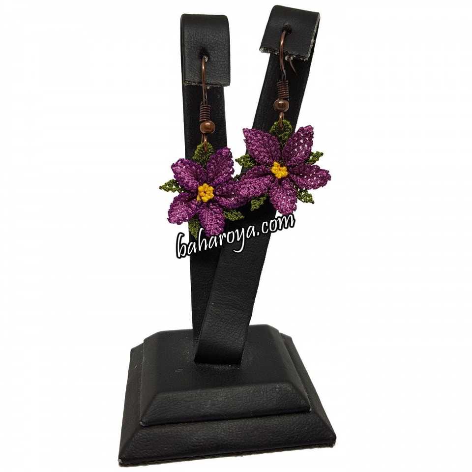 ต่างหูแฟชั่น İğne oyasıkır çiçeği küpe sallantıligh-mürdüm