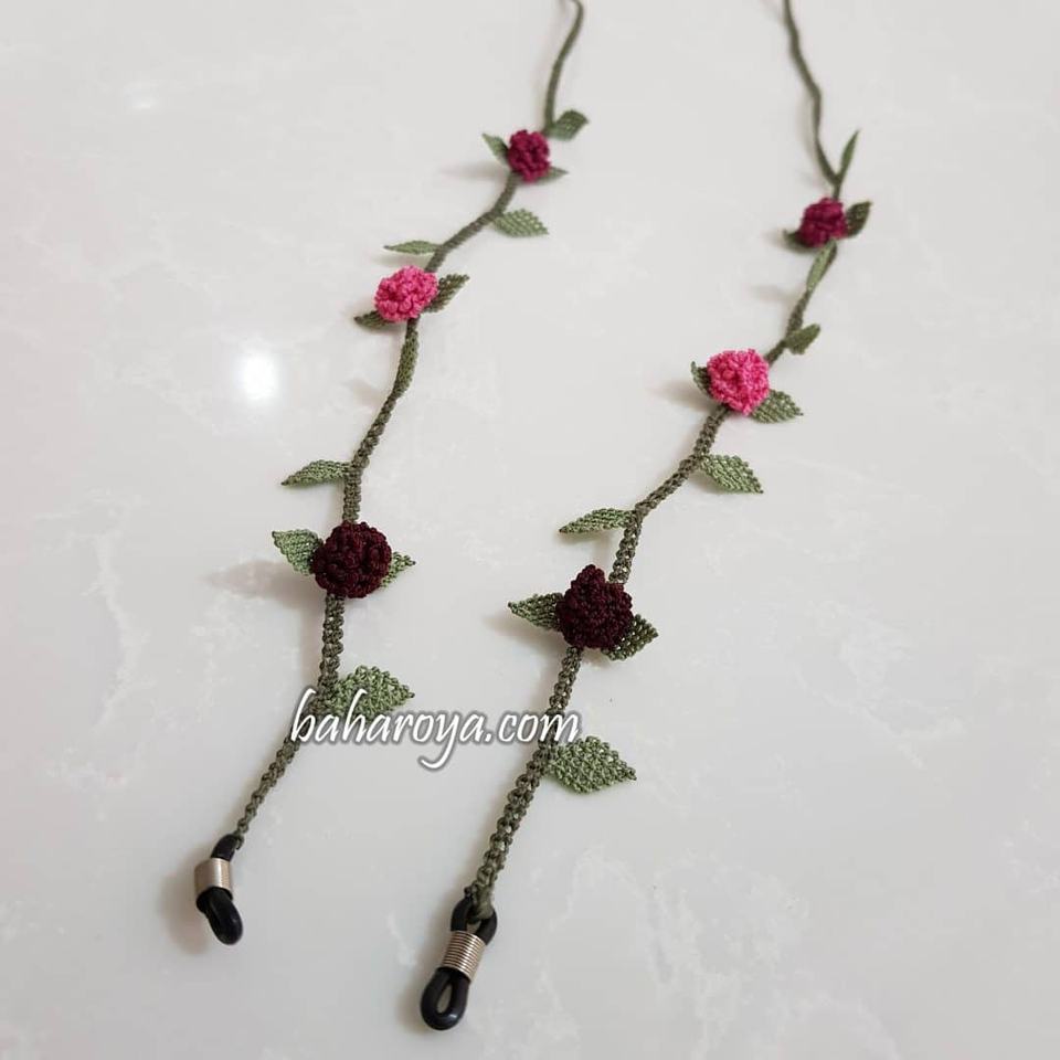 İğne oyasıtomurcuk ชิ้นส่วนแว่นตา pembe-şarabi-bordo Color ipi pembe-şarabi-bordo