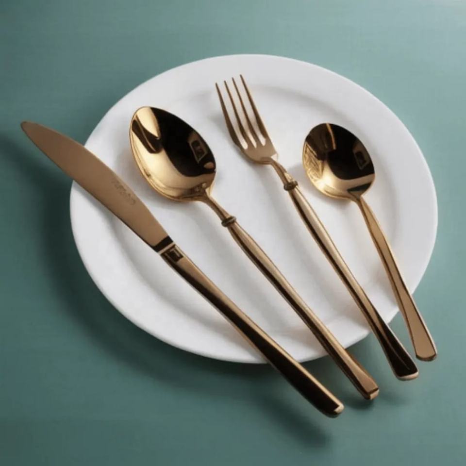 ชุดช้อนส้อมสแตนเลสสตีลแบบยุโรปสีทองด้าน ดีไซน์สวย ใช้ซ้ำได้ เหมาะสำหรับงานเลี้ยงและงานแต่งงาน ขัดเงาอย่างดี