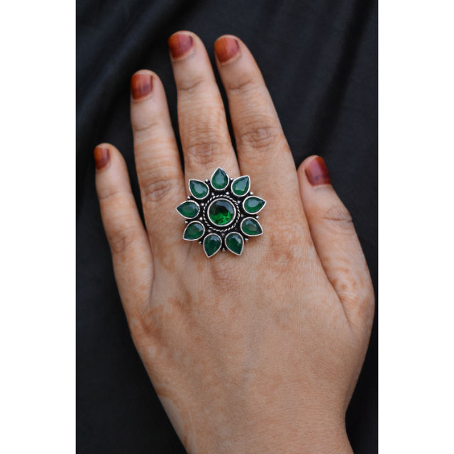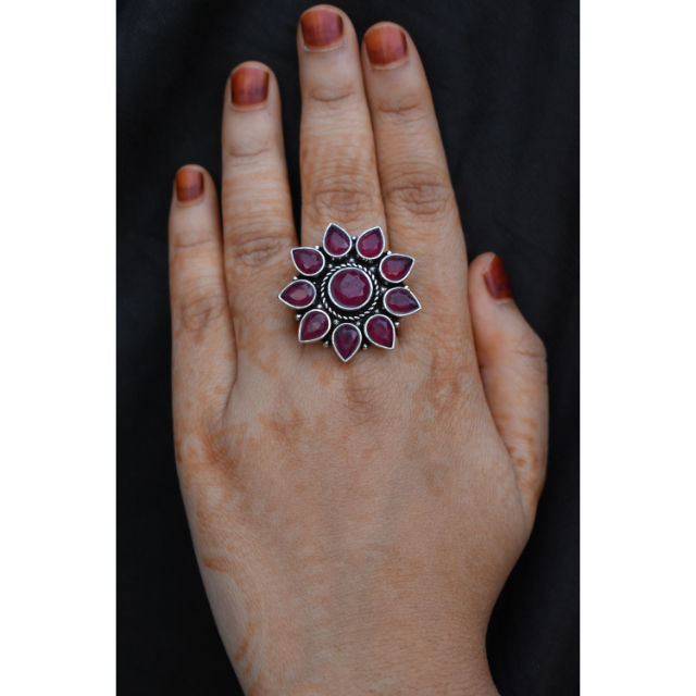 แหวนแฟชั่นสไตล์ตะวันตกสำหรับผู้หญิงและเด็กผู้หญิงทำจากหินสีเงินแบบแฮนด์เมดมีลักษณะคล้ายกันมาใหม่ล่าสุด